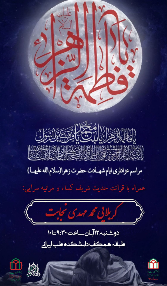 طبق تقویم برگزاری برنامه های فرهنگی در دانشکده طب ایرانی، مراسم توسل ماهانه هیات فاطمه زهرا (س) این دانشکده در تاریخ 12آبان 1404 همراه با قرائت حدیث کساء و مداحی و پذیرایی به صرف چای و حلوا به مدت نیم ساعت از ساعت 9:30 تا 10صبح برگزار شد.
