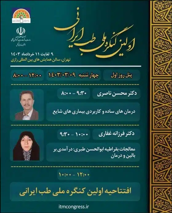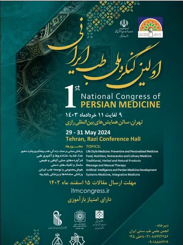 نخستین کنگره ملی طب ایرانی به همت انجمن علمی طب سنتی ایران و همکاری دفتر طب ایرانی وزارت بهداشت، ستاد توسعه اقتصاد دانشبنیان گیاهان دارویی و طب سنتی معاونت علمی و فناوری ریاست جمهوری، سازمان نظام پزشکی و دانشگاههای علوم پزشکی کشور در تاریخ 9 تا 11 خرداد 1403 در مرکز همایشهای رازی برگزار خواهد شد.